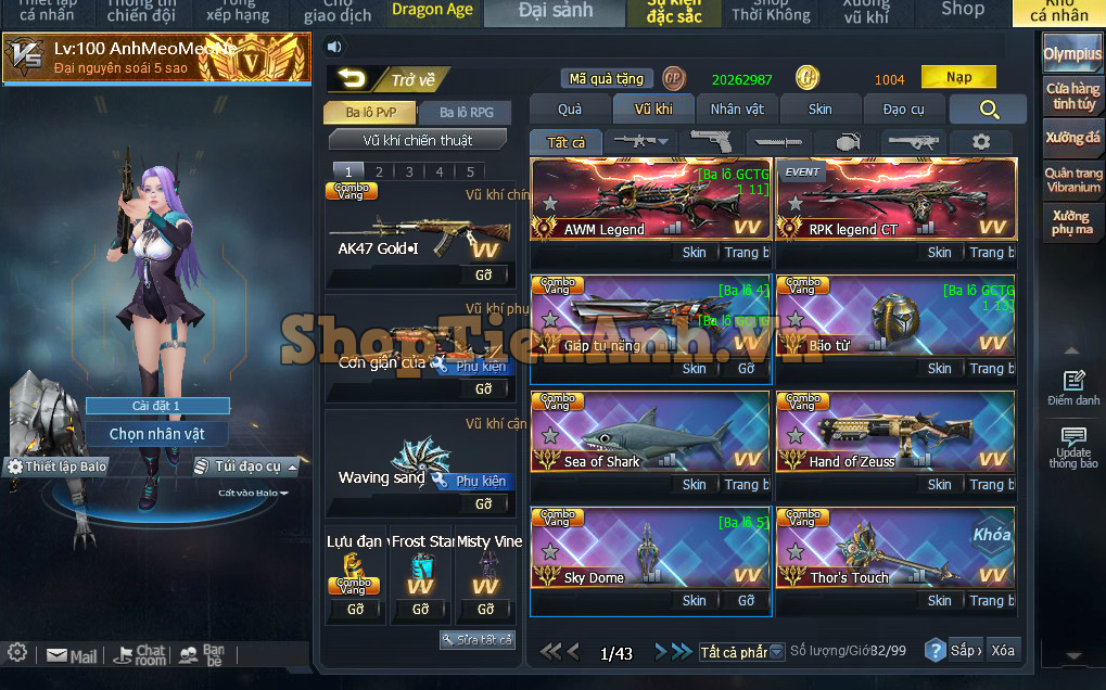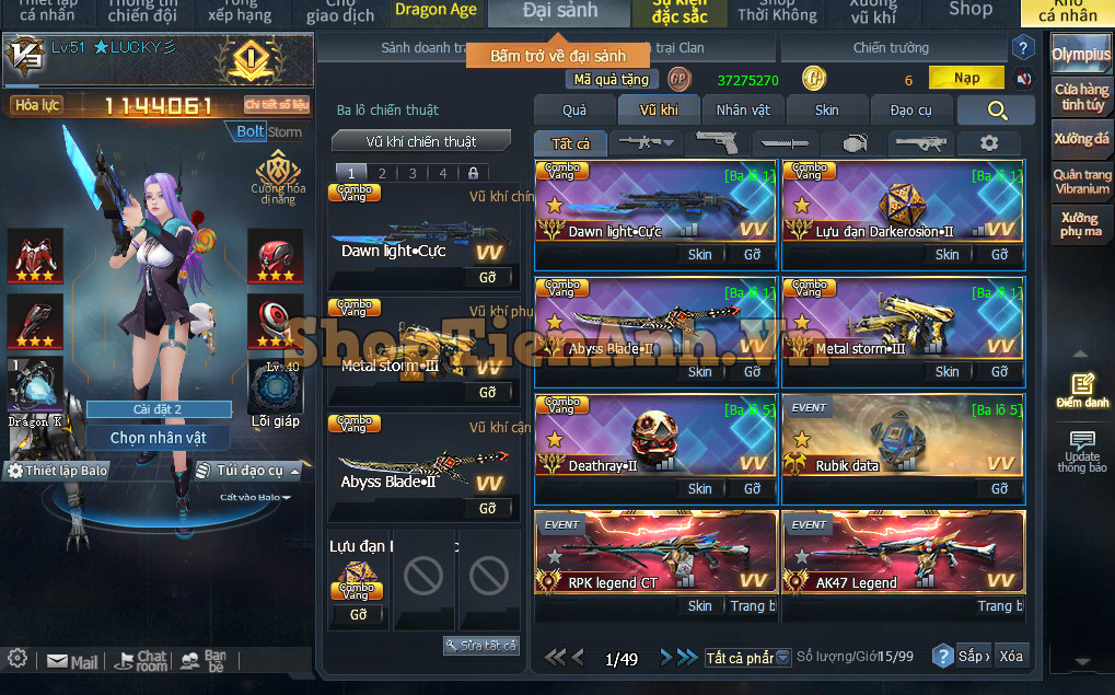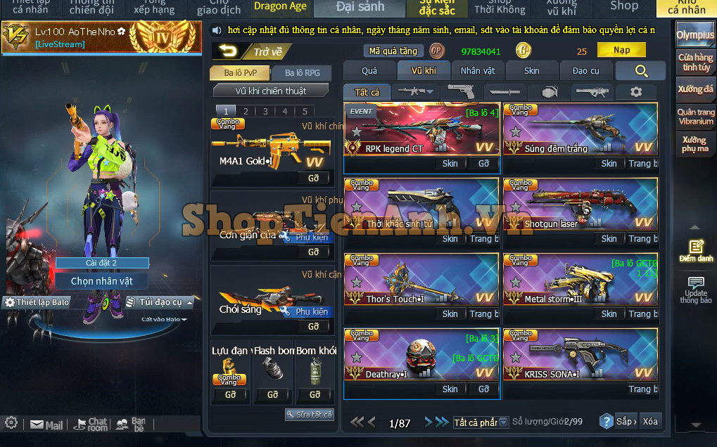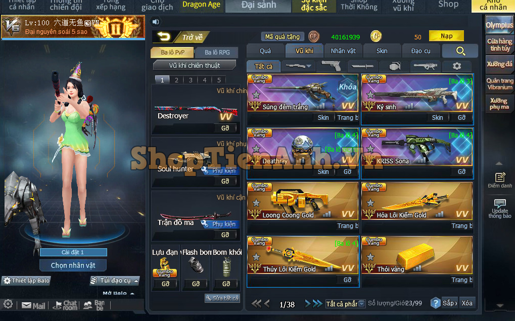 Acc có: Con hàng V10 chơi all chế độ Rpg 6m3 lực chiến đồng bộ Rồng max và nhiều vũ khí mới đồng bộ max..Nhân vật ma đồng cam..Đồ pvp và chơi zom 2D nhiều...còn 8 thẻ tên.