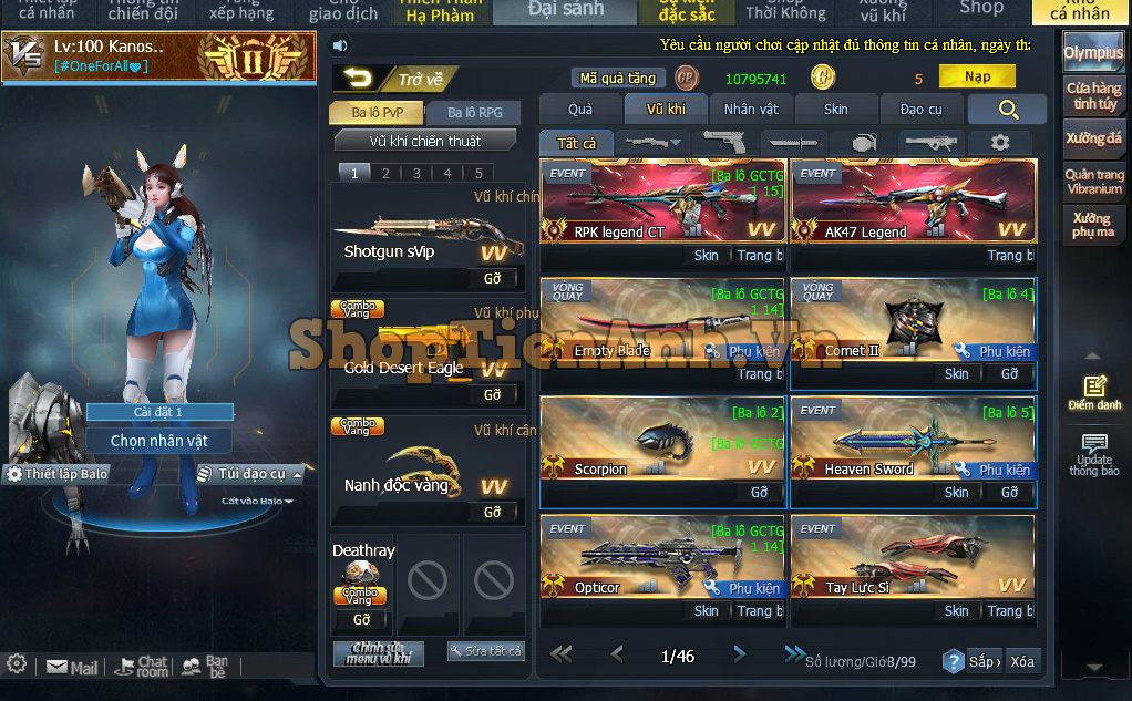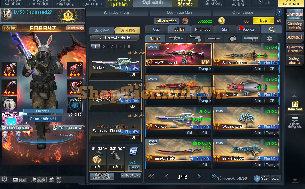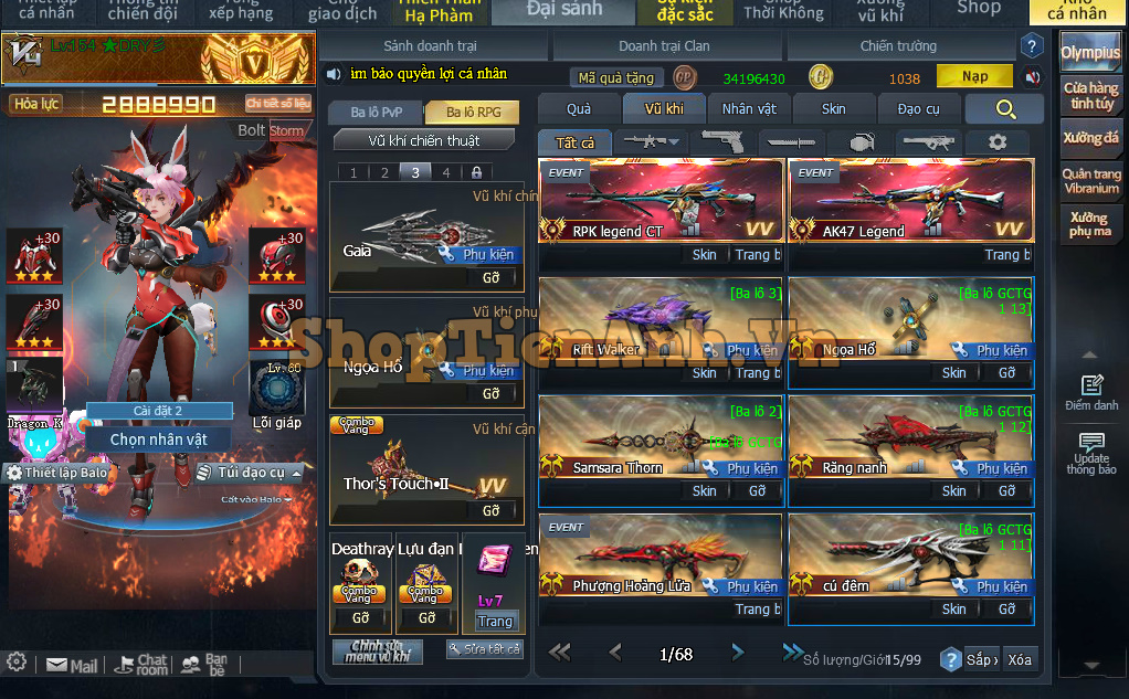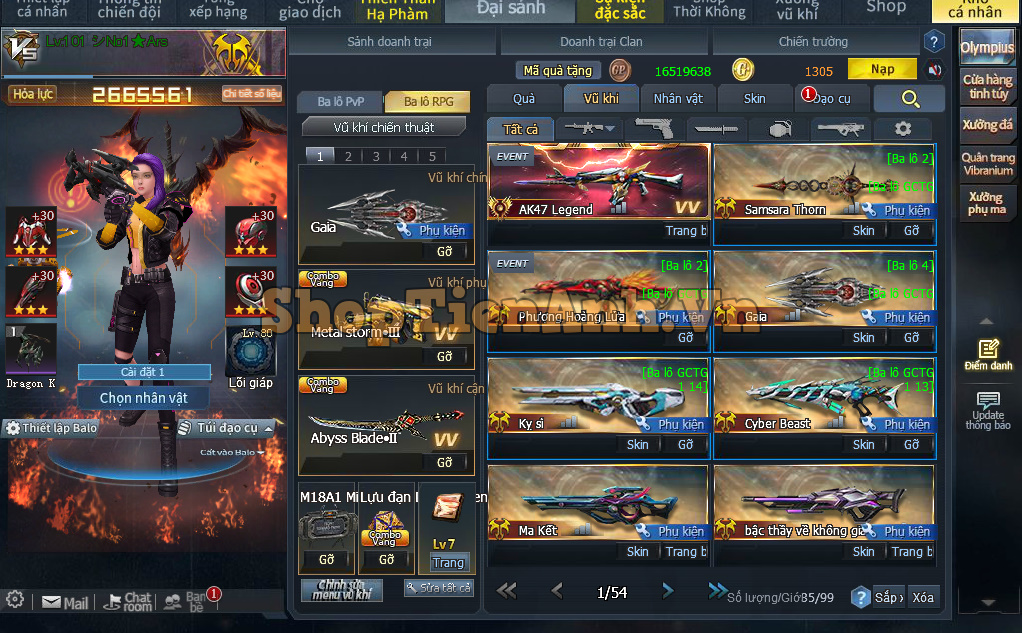 Acc có: Con hàng chuyên Rpg 2m9 lực chiến đồng bộ Ngọa hổ và Gaia max..nhiều rác full phụ kiện chơi zom 2D.