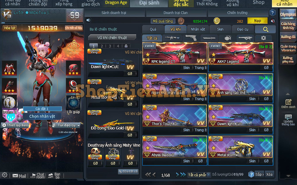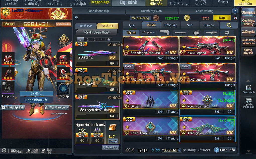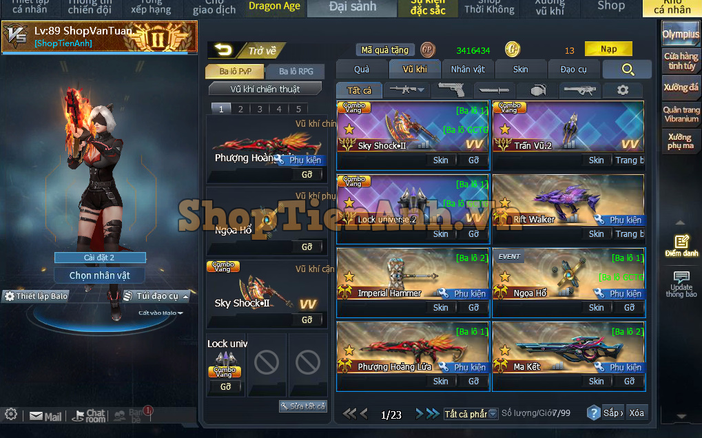 Acc có: Rpg 1m5 lực chiến...Có Rif và ngọa hổ full phụ kiện đồng bộ 900%..nhân vật ma đồng mới...đồ gold và svip nhiều cho ae chơi mod cổ.