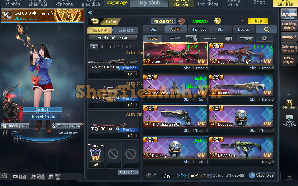 Acc có: Con hàng cho dân chuyên chơi snip và c4 có Awm legen, Awm strike full 5 phụ kiện, Sniper Guardian full phụ kiện... Katana full.