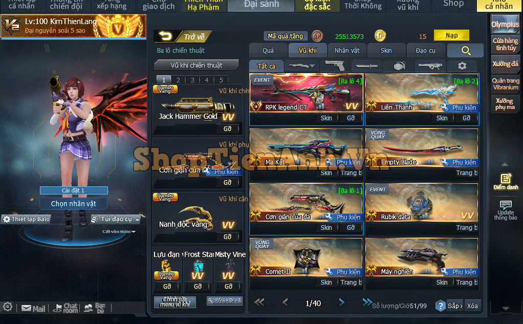 Acc có: Con hàng có lục đá,Liên thành mới, Skill Jack hammer hoàng gia hàng hiếm cho ae chơi mod cổ.