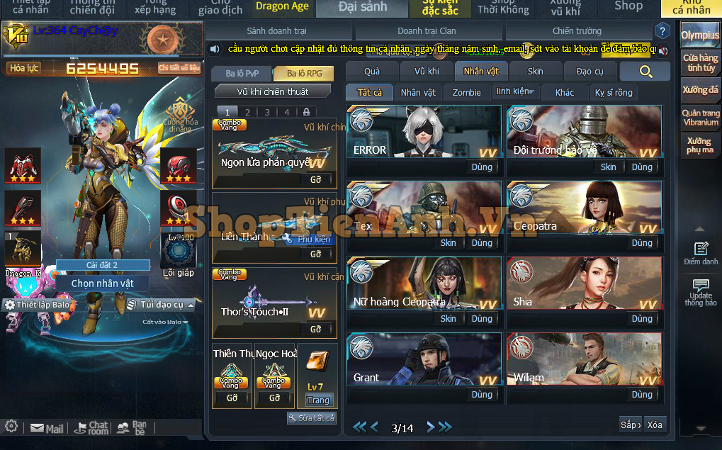 DANH MỤC: Mua Acc+Thuê Acc Tầm Trung