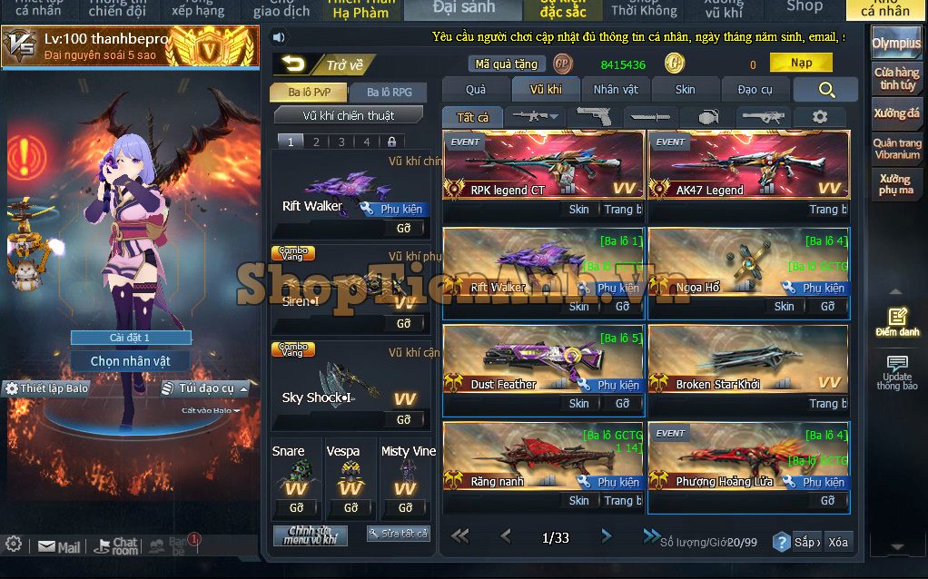 # Mua Acc hoặc thuê Acc trên Shop: