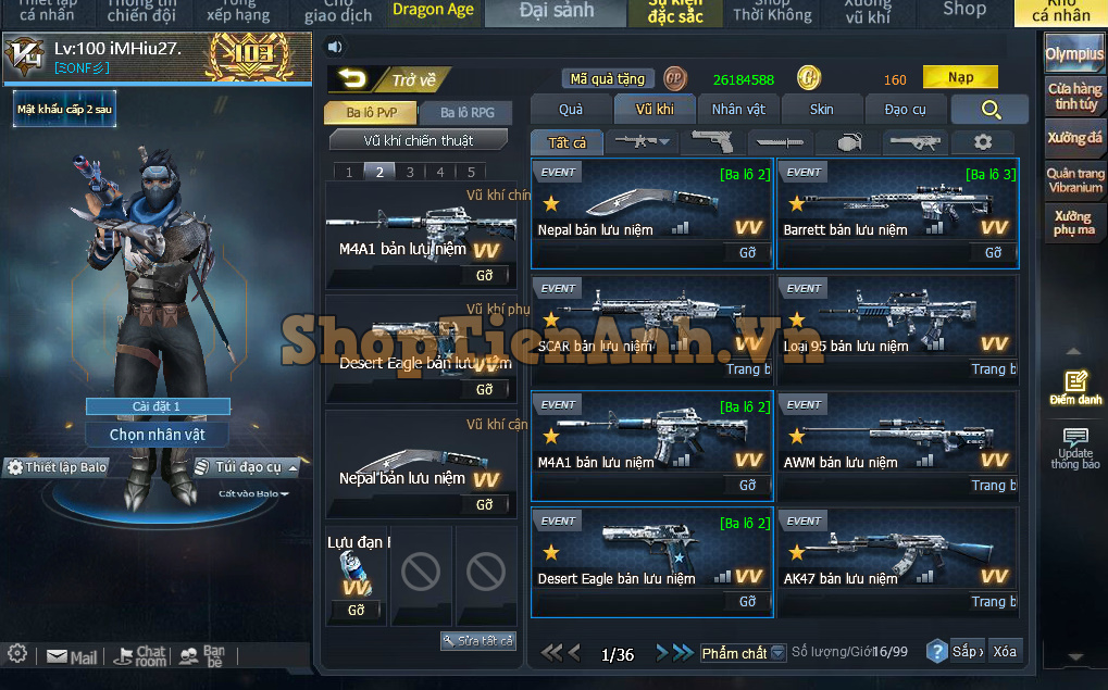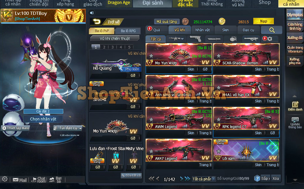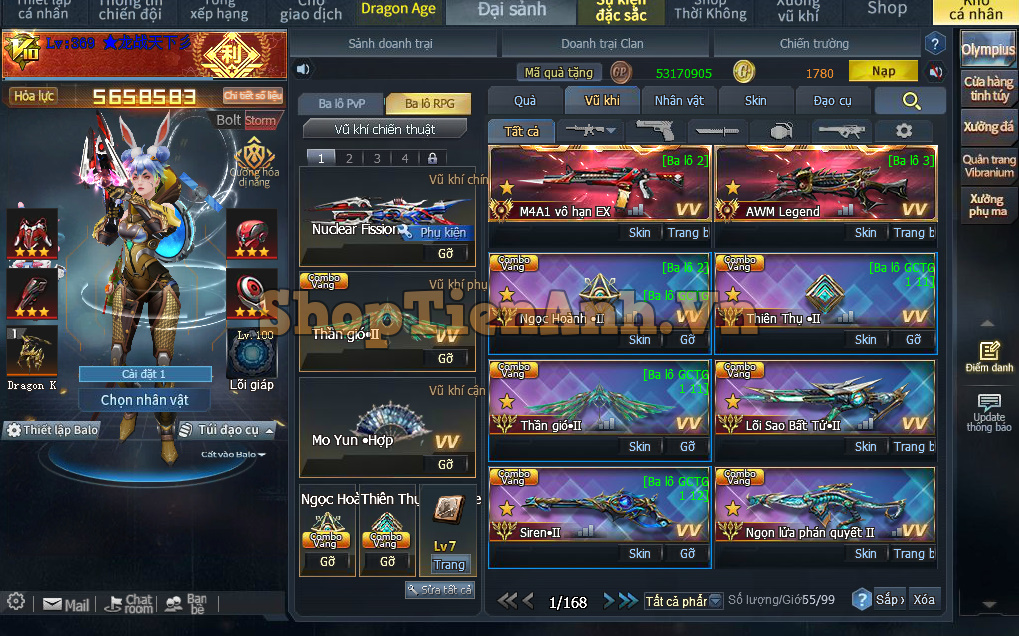 Acc có: Siêu Phẩm Rpg gần 7m lực chiến Lv706..đồng bộ Rồng và 2D max..Nhân vật ma đồng full bộ đỏ +4 và max thiên phú..đồ pvp không thiếu gì..đáng để Ae đầu tư đua top.