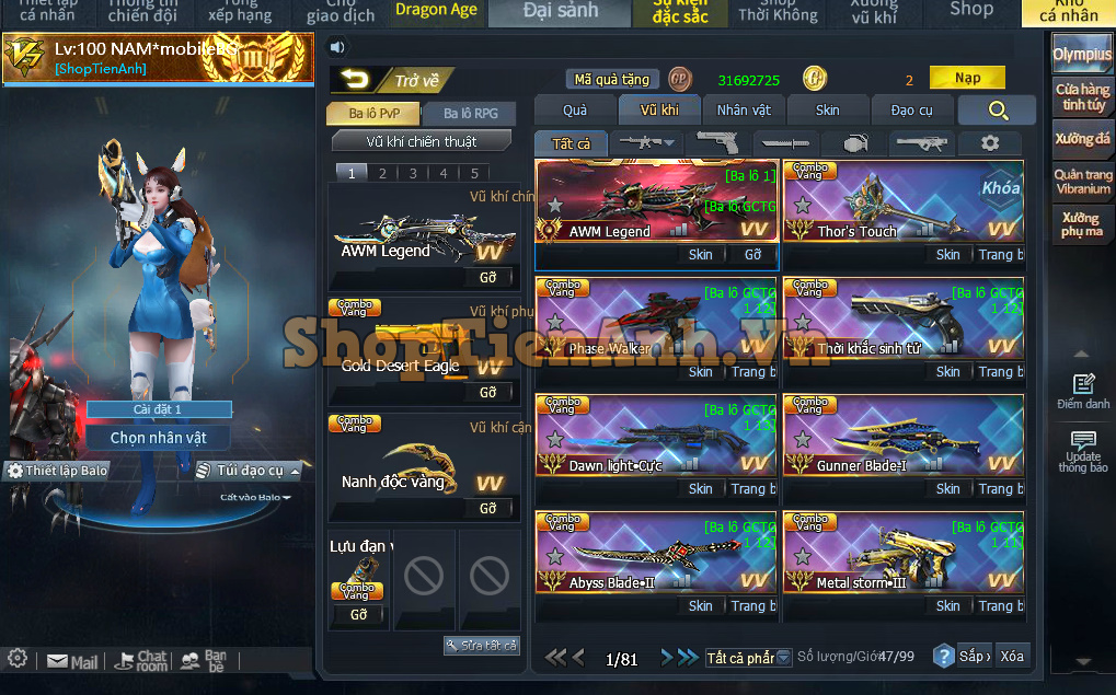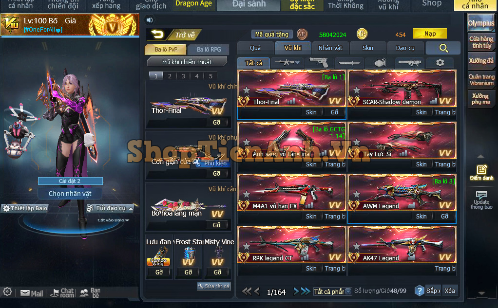 Acc có: Siêu Phẩm Miền Nam cân all chế độ RPG gần 7m lực chiến đồng bộ 2D max,rìu max..Nhân vật Ma Đồng full bộ đỏ..full bộ sưu tập vũ khí kim cương 2025..Đáng để Ae đầu tư đua top.