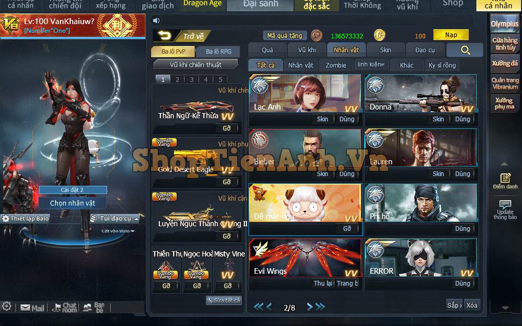 DANH MỤC: Mua Acc+Thuê Acc Tầm Trung